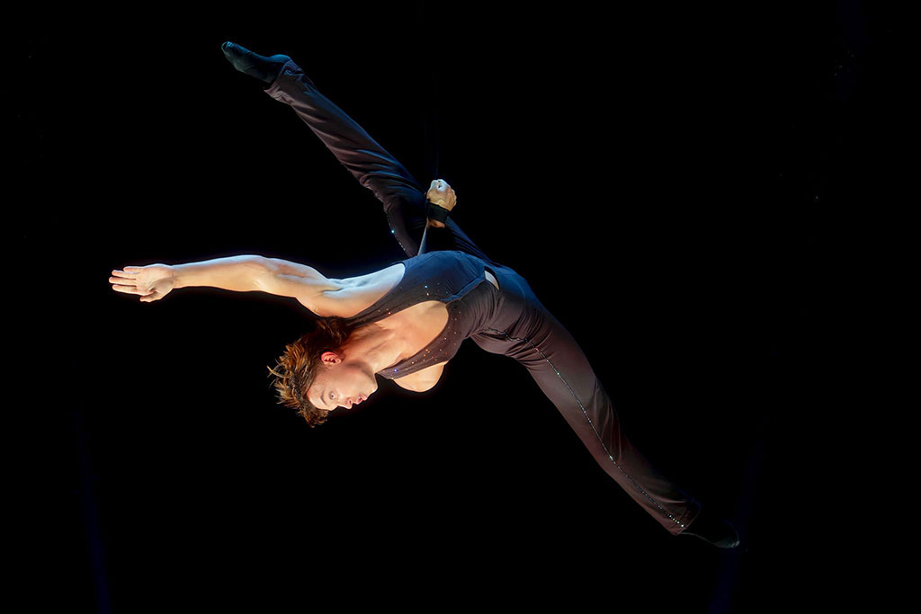 “Discendente della famiglia Orfei e nipote di Moira, cresce tra pista e tradizione circense – si legge nella nota diramata dallo staff organizzativo -. Formatosi nella scuola della famiglia Orfei­-Nones-Malachikine, dopo gli esordi con numeri di mano a mano accanto al padre e al fratello, si specializza nelle cinghie aeree, vincendo l’Italian Circus Talent Festival 2022. Dal 2024 porta il suo talento a Parigi con la Compagnia Alexis Gruss”.