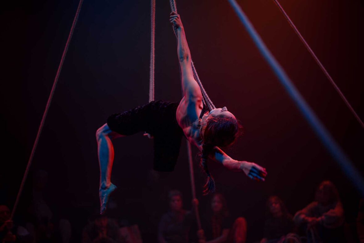 “Corps à Corde” della francese Katell Boudrandi-Saj si sviluppa come un’esperienza partecipativa in cui il pubblico diventa parte attiva dell’azione scenica. Attraverso un dispositivo aereo costruito in scena con corde e contrappesi, sostenuto dagli spettatori stessi, il lavoro mette in gioco fiducia, responsabilità e relazione, trasformando il gesto acrobatico in un processo condiviso e in continua evoluzione.